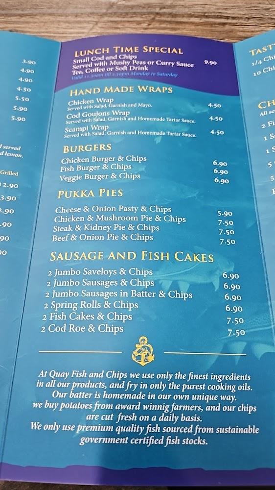 Located at 15 Joel St, Northwood HA6 1LU, Quay Fish & Chips is a beloved spot known for its top-notch fish and chips. The location is easy to reach, with free street parking available for visitors. Its casual vibe makes it perfect for families and solo diners alike, and there is ample indoor seating along with a warm atmosphere. The restaurant is wheelchair accessible, ensuring everyone can enjoy a hearty meal. Offering delivery and takeaway options, it serves both lunch and dinner, making it a great choice any time of day. Quay Fish & Chips boasts a menu bursting with flavors, featuring everything from classic battered cod to vegetarian options. If you're in the area, this is a destination to remember. The friendly team here adds to the inviting experience, welcoming each customer with a smile, ensuring fantastic service from start to finish.